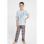Пижама для мальчиков из высококачественного хлопка. Футболка с длинными рукавами и принтом. Длинные клетчатые брюки в тон с удобным эластичным поясом.