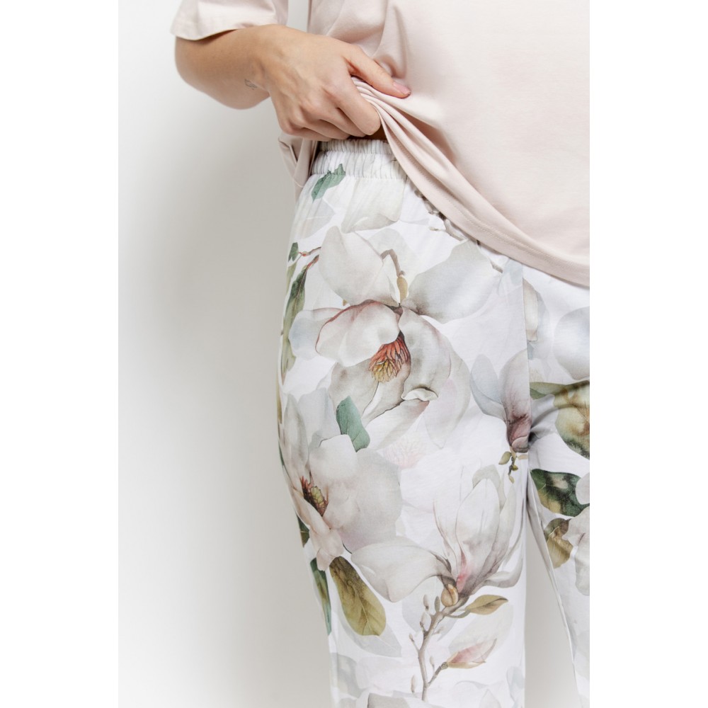 Эти брюки длиной 7/8 украшены ярким цветочным принтом , что придает изделию свежий и жизнерадостный вид. Эластичный пояс с хлопковой отделкой обеспечивает удобную и надежную посадку без какого-либо давления. Свободный крой делает пижаму AFRODYTA идеальной как для сна, так и для отдыха дома, особенно в варианте больших размеров .