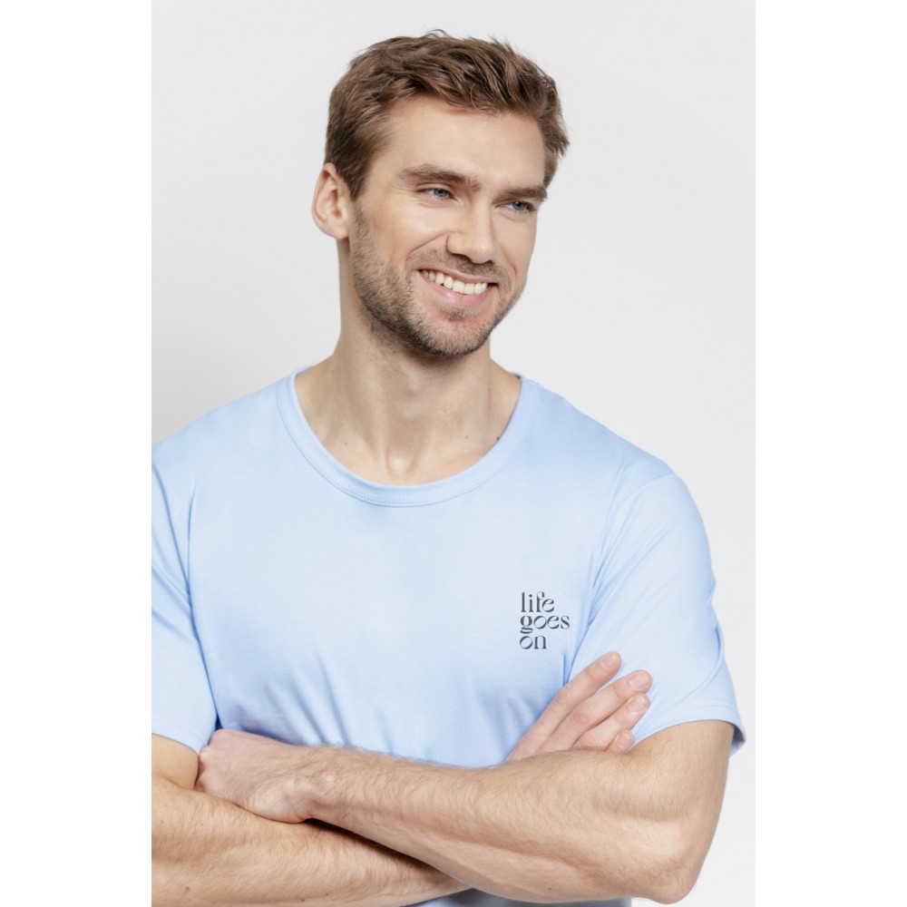 Эта элегантная футболка с короткими рукавами и круглым вырезом отличается минималистичным дизайном. Неброский принт на груди добавляет современный штрих, подчеркивая повседневный стиль. Мягкая, приятная на ощупь ткань обеспечивает комфорт в течение всего дня и ночи.