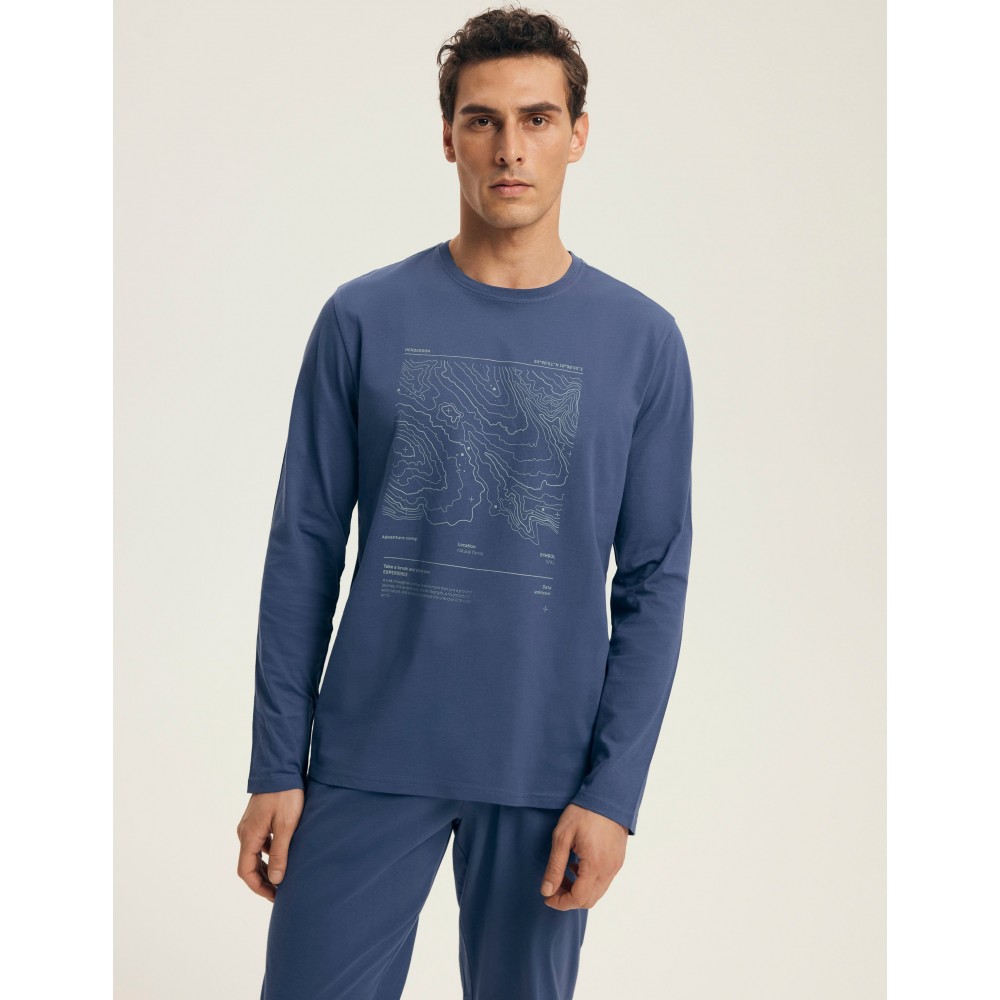 Стильная мужская пижама из натурального хлопка. Серая полосатая блуза с длинным рукавом в сочетании ..