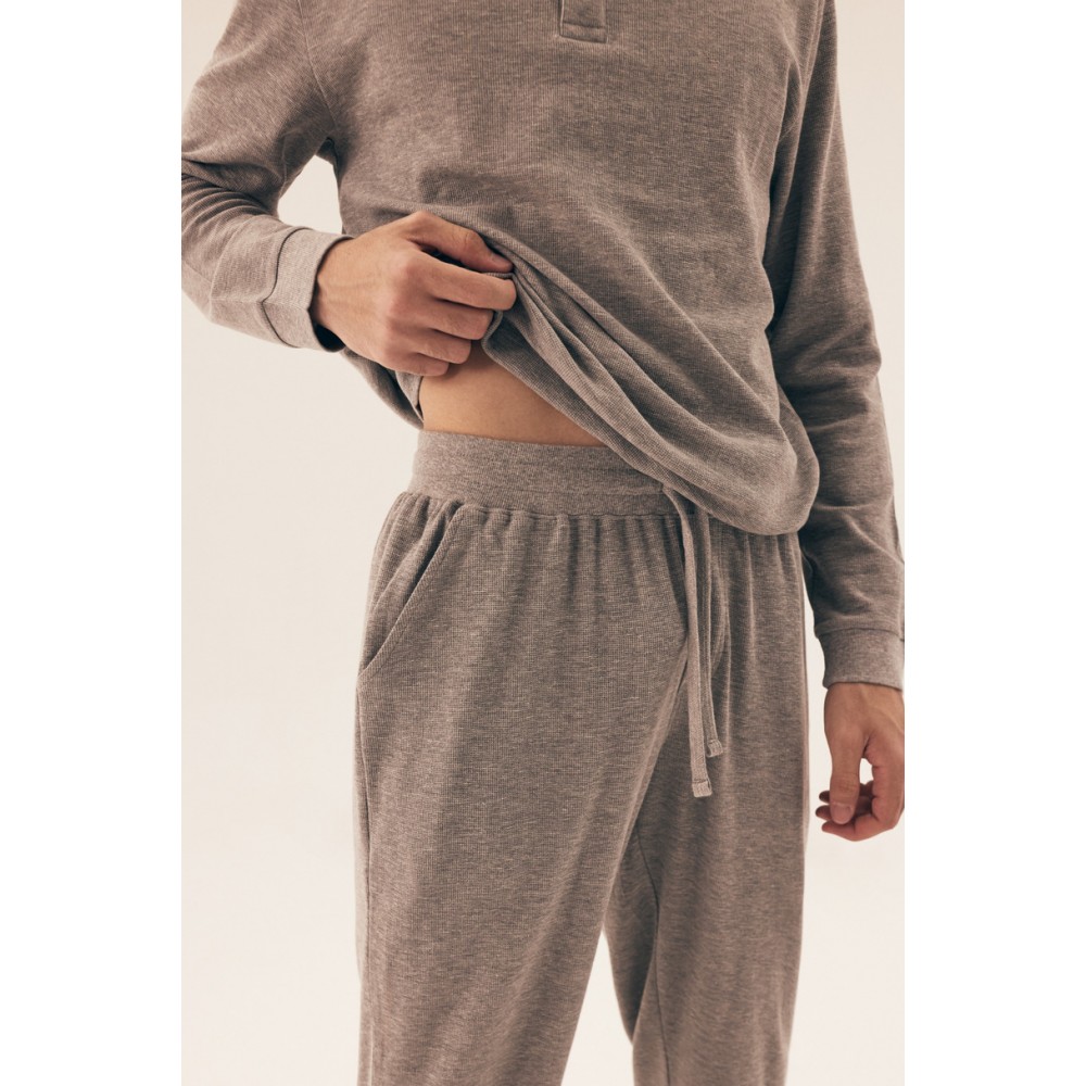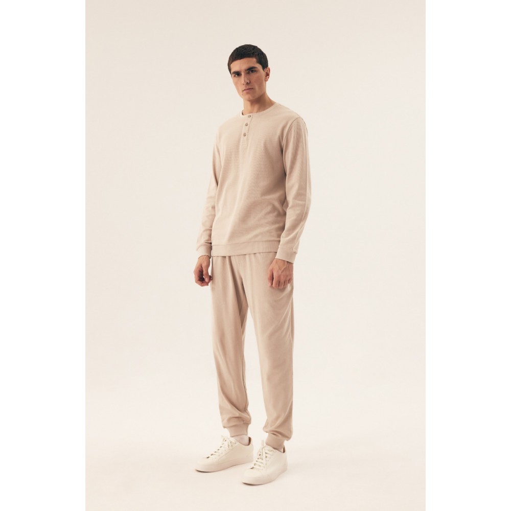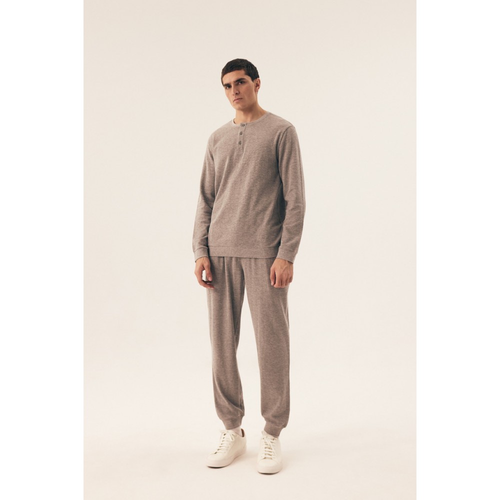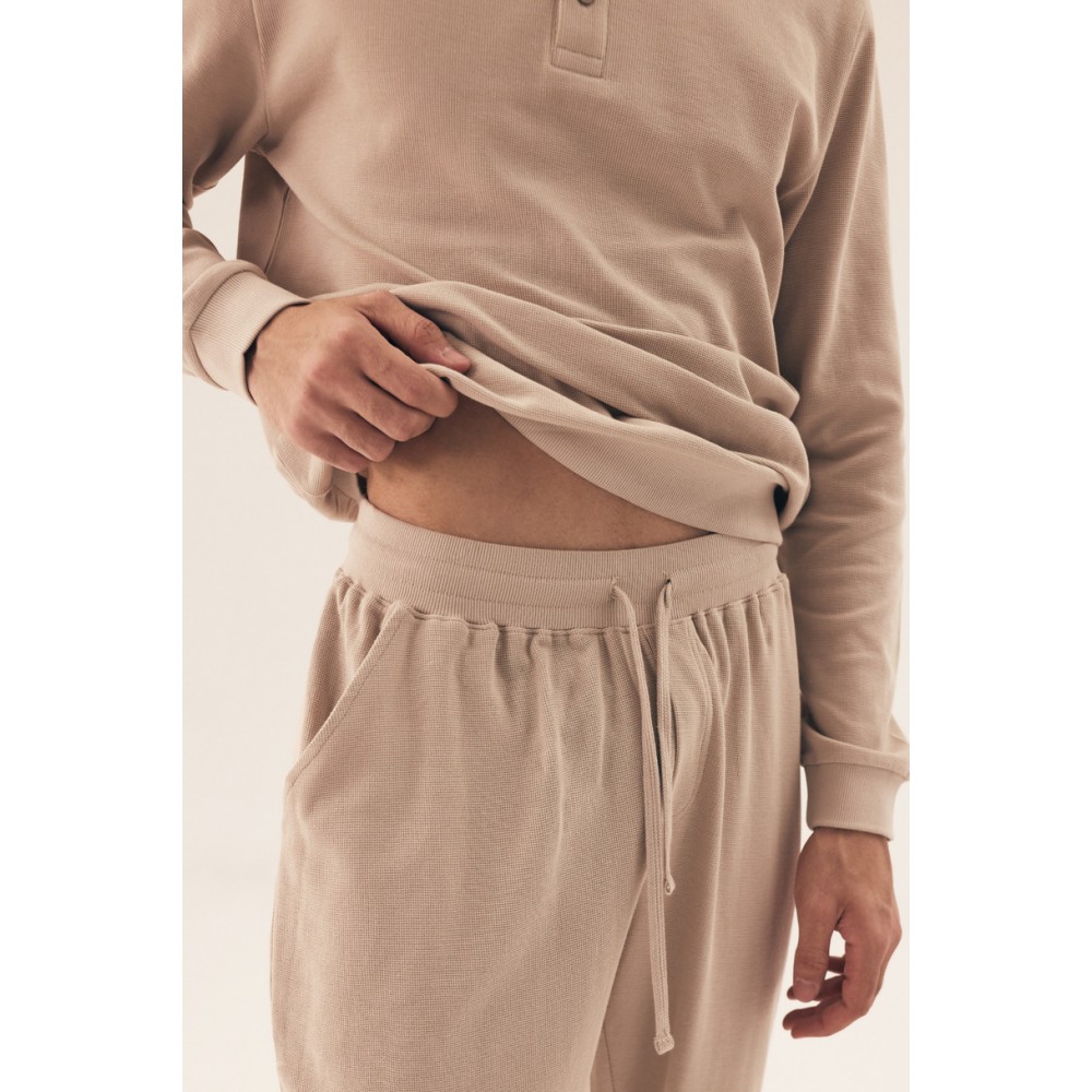 Откройте для себя комфорт и стиль с мужской пижамой Henderson Desert 42638 SS25 . Изготовленная из высококачественных материалов, она обеспечивает комфорт и воздухопроницаемость на протяжении всей ночи. Длинный рукав и практичные завязки обеспечивают идеальную посадку. Классический крой и современный дизайн делают эту пижаму идеальной для повседневной носки и прохладных ночей.