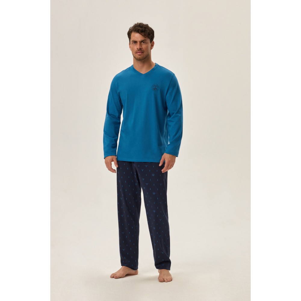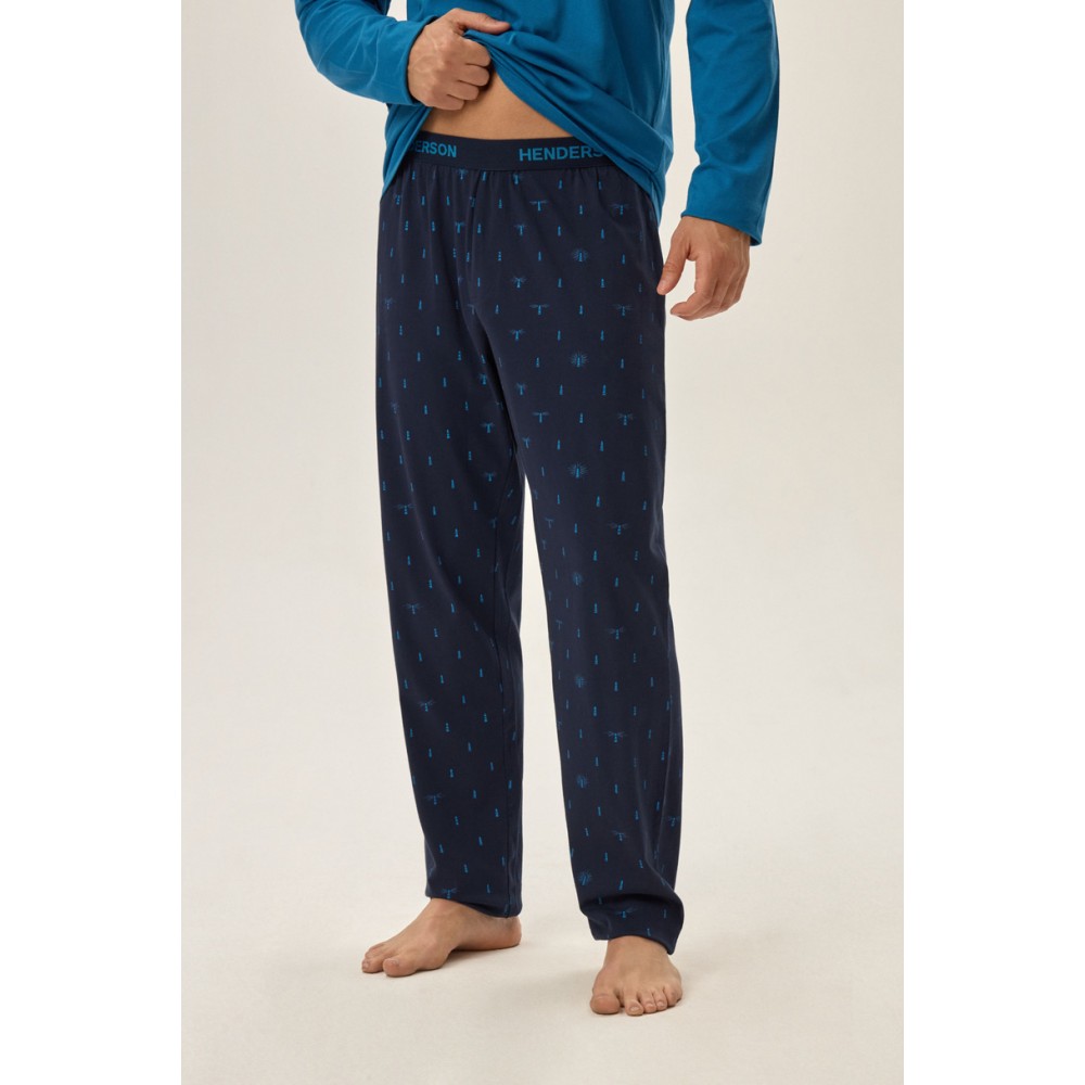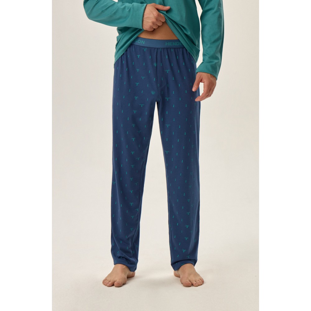 Мужская пижама с V-образным вырезом и длинными рукавами. Длинные брюки с эластичным поясом и логотипом Henderson.