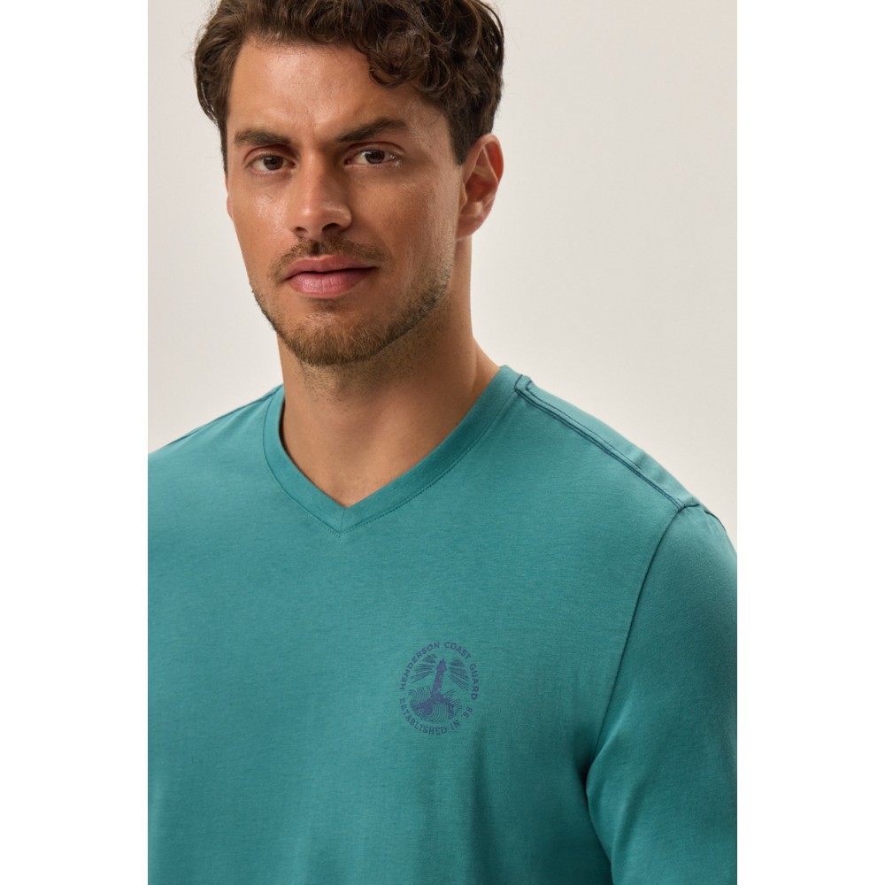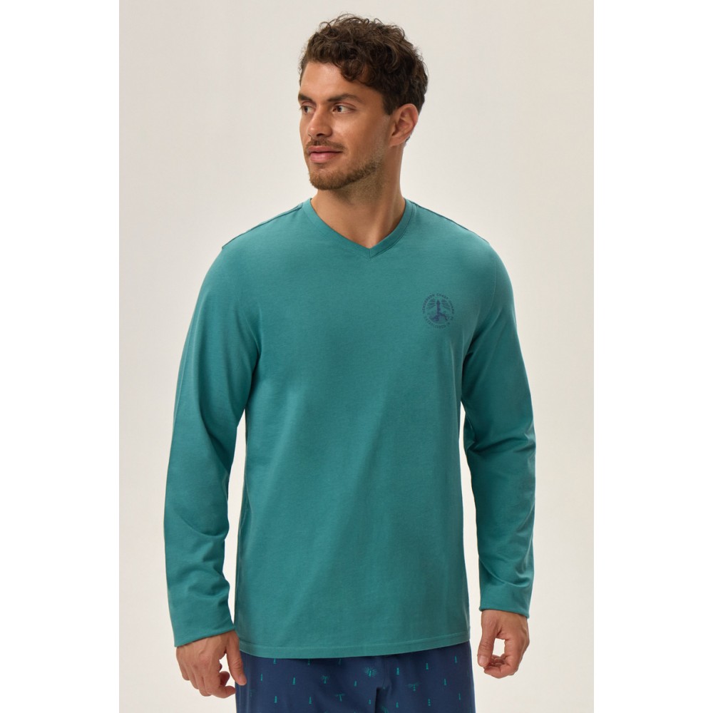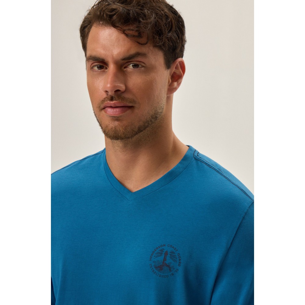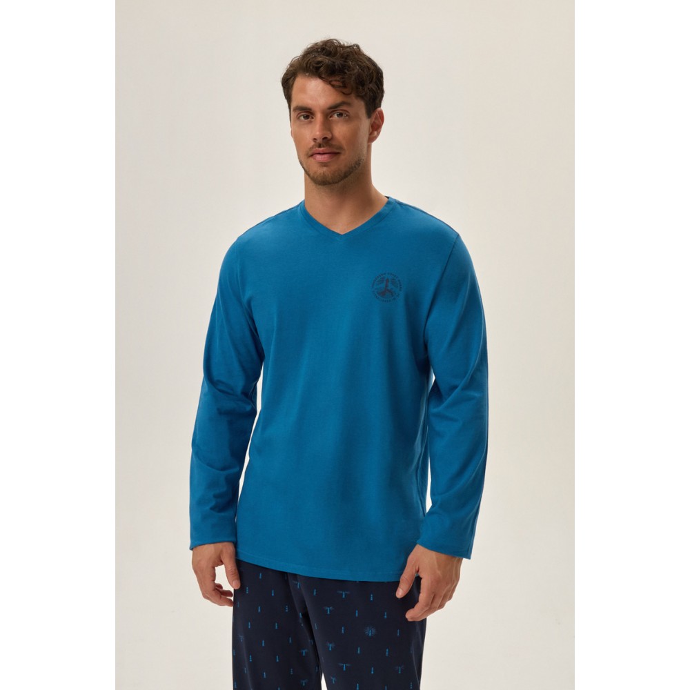 Мужская пижама с V-образным вырезом и длинными рукавами. Длинные брюки с эластичным поясом и логотипом Henderson.