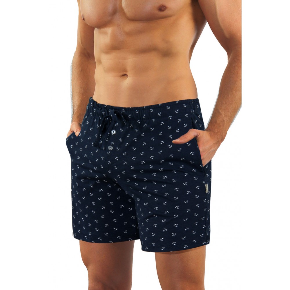 Мужская хлопковая пижама с короткими рукавами. Шорты с широким эластичным поясом, застежкой на две пуговицы и удобными карманами.