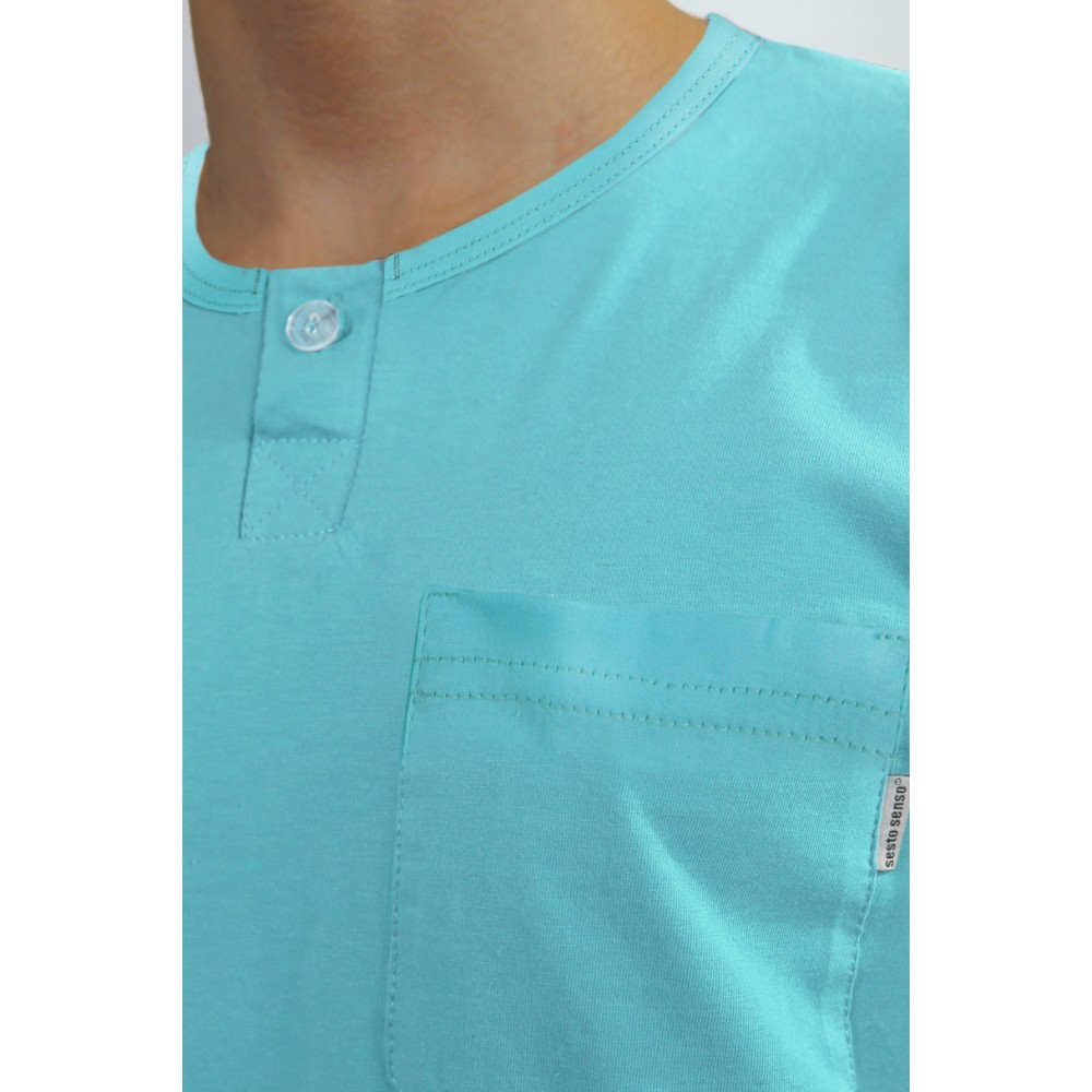 Мужская хлопковая пижама. Комплект состоит из однотонной футболки с короткими рукавами и клетчатых шорт.