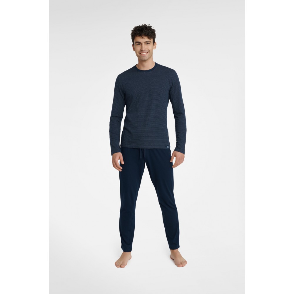 Мужская пижама из высококачественного хлопка. Длинные рукава, длинные штаны, однотонная.