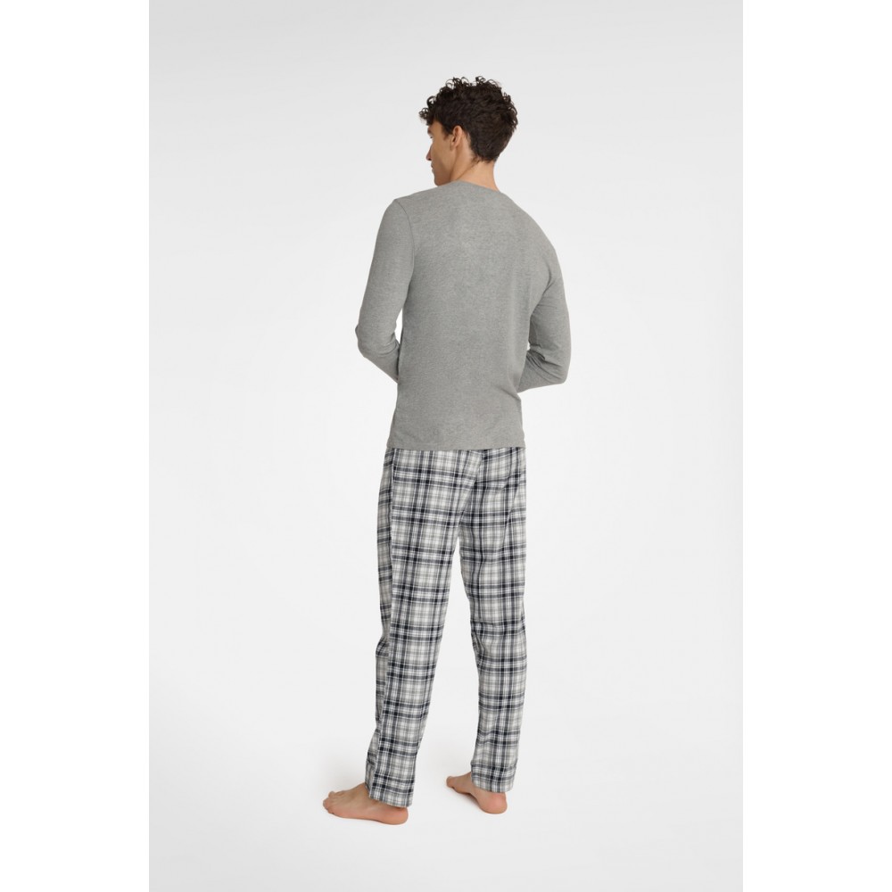 Мужская пижама из высококачественного хлопка. Длинные рукава, длинные брюки в цветную клетку и мягкий лён.