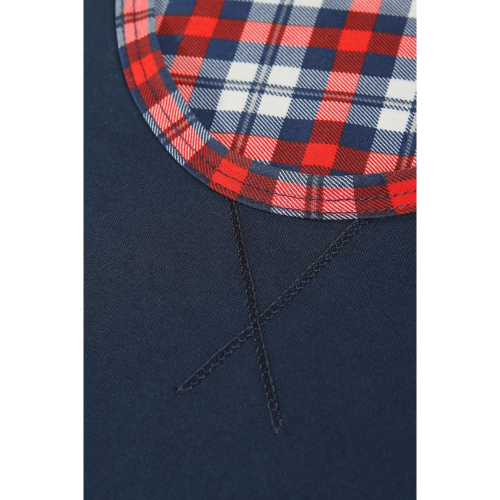 Мужская хлопковая пижама. Футболка с длинными рукавами и длинные клетчатые брюки.