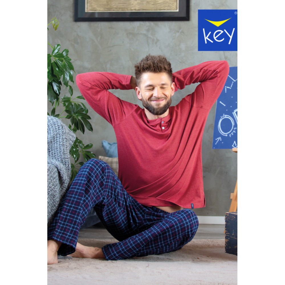 Теплая пижама, сочетающая в себе хлопковую толстовку и фланелевые брюки. Толстовка изготовлена из классического мягкого хлопка, прочная и долго сохраняет форму. Толстовка имеет круглый вырез и застегивается на три пуговицы. Боковой разрез внизу завязывается декоративной хлопковой лентой. Классические брюки прямого кроя с удобной мягкой резинкой на талии и глубокими боковыми карманами.