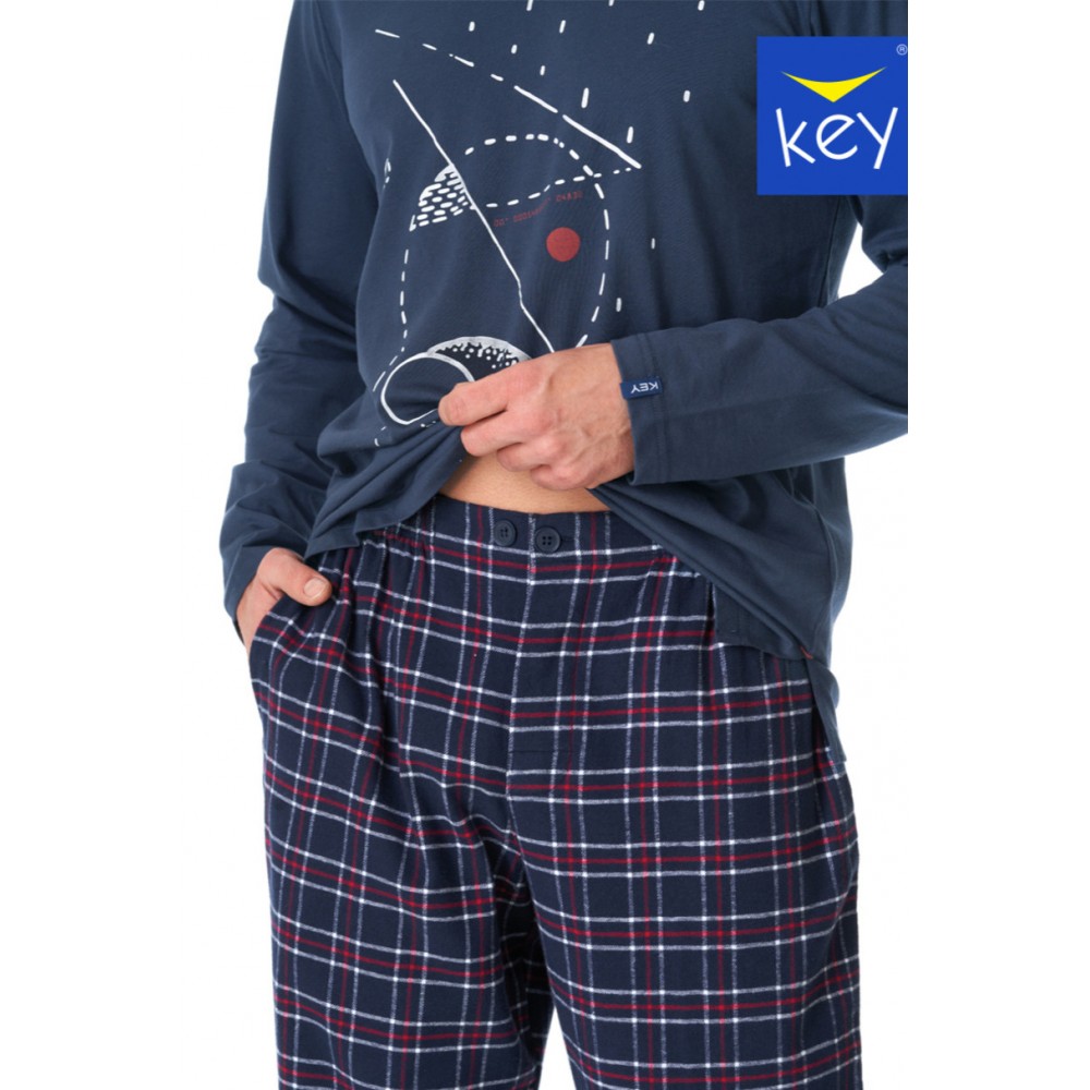 Теплая пижама, сочетающая хлопковую толстовку и фланелевые брюки. Толстовка изготовлена из классического мягкого хлопка, прочная и долго сохраняет форму. Круглый вырез горловины толстовки выполнен из рубчатой ткани, что обеспечивает сохранение формы даже после многочисленных стирок. Боковой разрез внизу толстовки завязывается декоративной хлопковой лентой. Классические брюки прямого кроя с удобной мягкой резинкой на талии. Застежка на пуговицы спереди и глубокие боковые карманы.