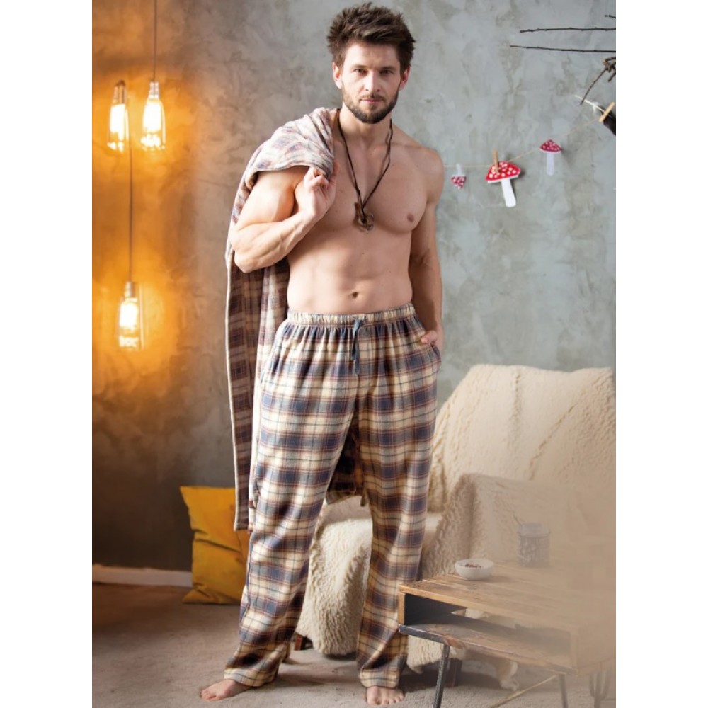 Классические брюки прямого кроя с удобным поясом на мягкой резинке и кулиской. Застёжка на пуговицы спереди и глубокие боковые карманы. Изготовлены из 100% хлопковой фланели.
