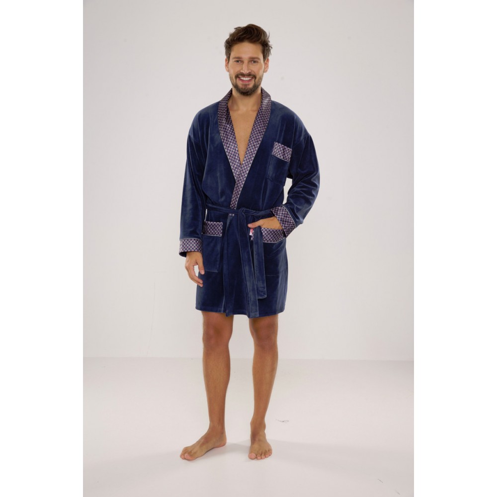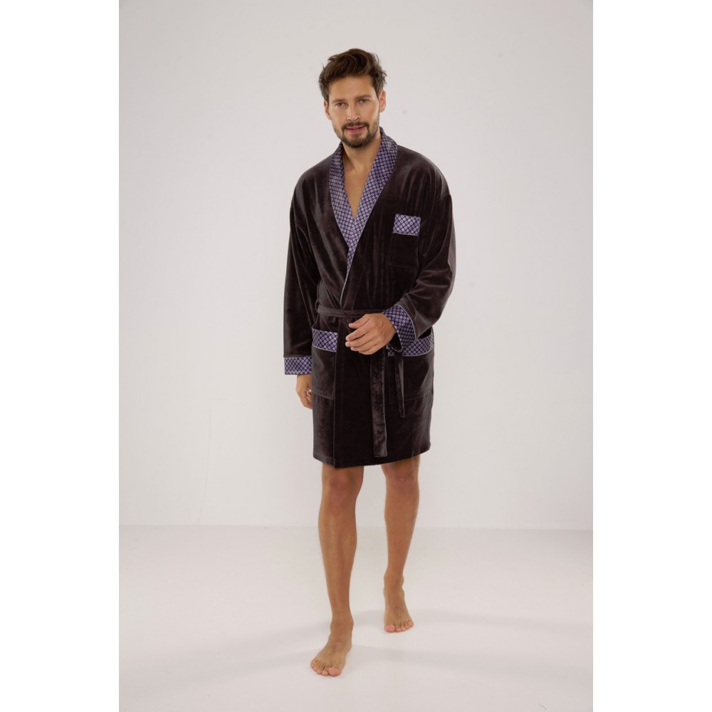 Мужской бархатный халат. Короткий, с шалевым воротником и поясом.