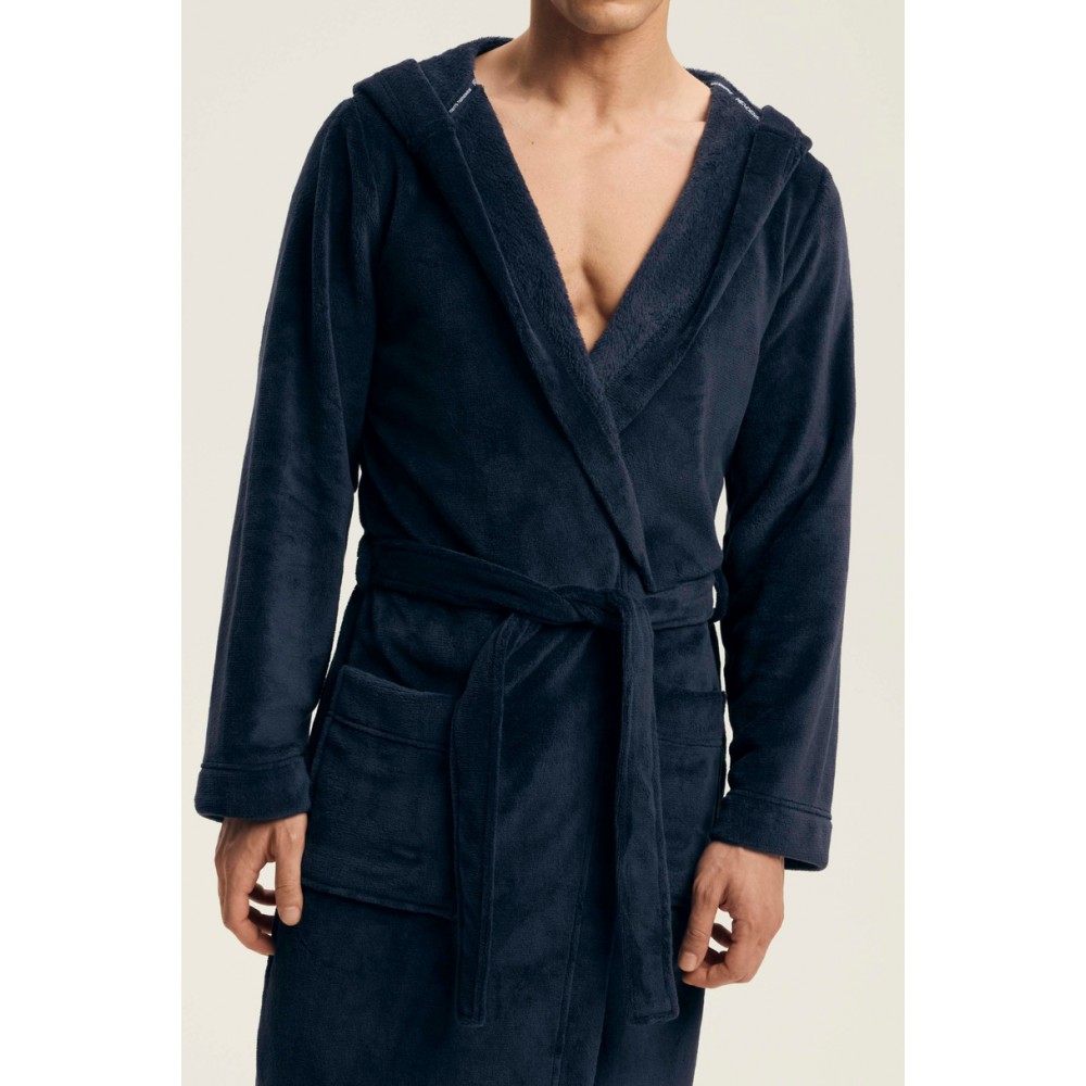 Мужской халат NAPS 43374 AW25 — отличный выбор для мужчин, ценящих минималистичный дизайн и повседневный комфорт. Он изготовлен из мягкой и приятной на ощупь ткани и идеально подходит для прохладного утра после ванны или вечера дома. Классический однотонный тёмно-синий цвет придаёт ему вневременный стиль. Удобный капюшон, карманы и пояс делают халат не только функциональным, но и очень удобным.