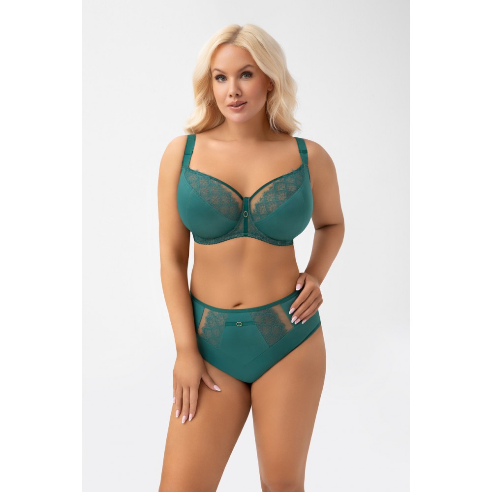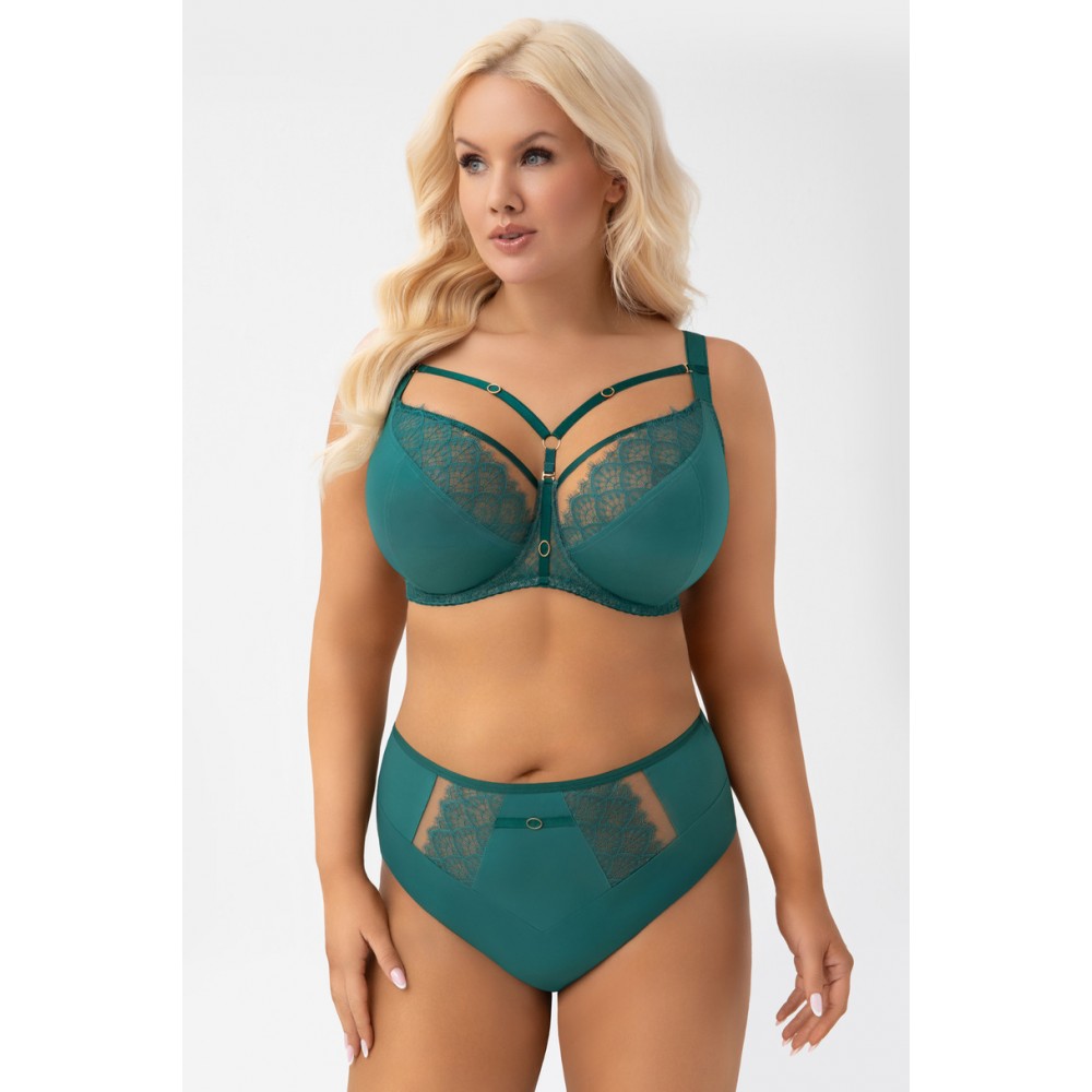 • Górna krawędź miski wykończona połyskującą taśmą, płynnie przechodzi do ramiączka powodując lepsze podtrzymanie biustu