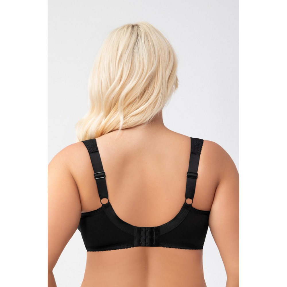 Конструкция на косточках стабилизирует грудь и придает ей естественную округлую форму, мягко подтягивая ее. Широкий пояс и регулируемые бретели обеспечивают комфорт в течение всего дня — даже для больших размеров. Черный цвет добавляет универсальности: он дополняет любой стиль, хорошо смотрится под темной одеждой и всегда выглядит элегантно.