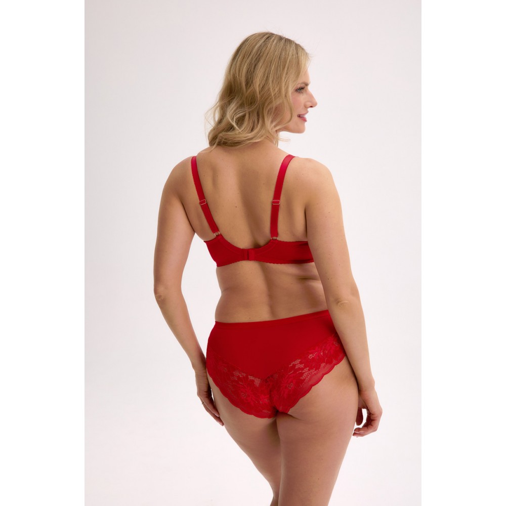Бюстгальтер MIRELLA SS5 (артикул 1058 Sonia) представлен в чувственном, огненно-красном цвете. Верхняя чашечка без подкладки выполнена из прозрачной сетки, которая мягко облегает грудь и придает ей нежный вид. Нижняя чашечка усилена корсетным поролоном и покрыта элегантным кружевом, которое изящно украшает и формирует грудь. Конструкция SS5 идеально приподнимает и обхватывает грудь, подчёркивая её естественную форму и обеспечивая комфорт даже при длительном ношении. Такие детали, как красная окантовка и вырезы с бретельками, ещё больше подчёркивают сексуальность этой модели. Это идеальный выбор как для особых случаев, так и для повседневных, смелых образов.