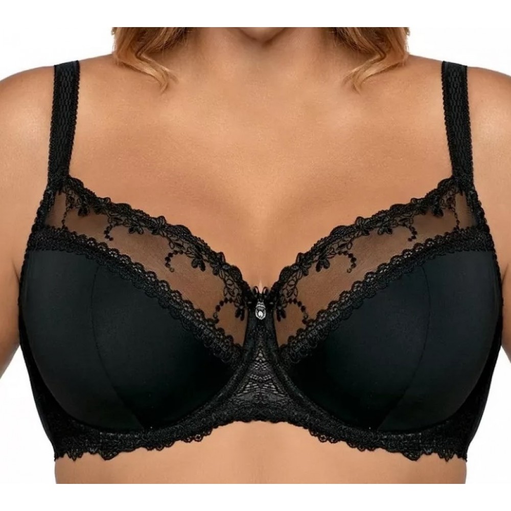 Бюстгальтер с полууплотнёнными чашечками. Верхние чашки украшены декоративной вышивкой, нижние – отд..