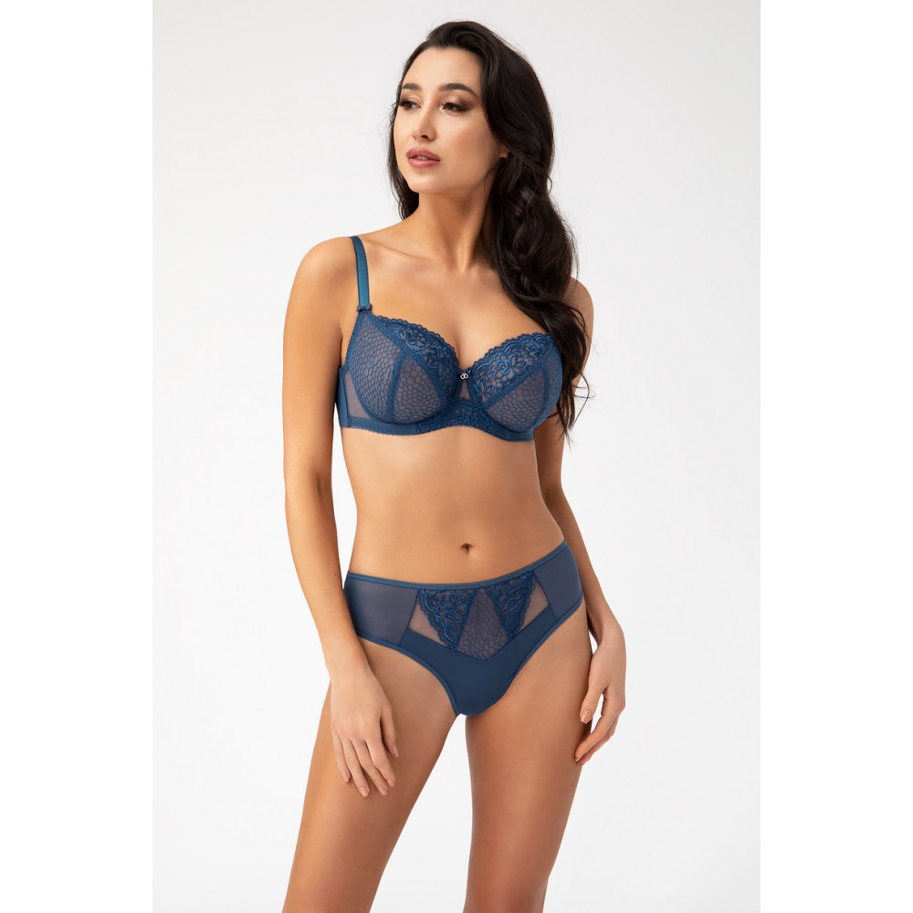 Мягкий бюстгальтер на основе модели K 496 в цвете «французский синий». Этот бюстгальтер предназначен для женщин со средней и большой грудью, которые ценят комфорт, отличную поддержку и чувственную элегантность. НИЖНЯЯ ЧАШКА: Вышитые, устойчивые плиссированные чашки на подкладке из прочного тюля для лучшей поддержки. ВЕРХНЯЯ ЧАШКА: Вышитые, на подкладке из прочного тюля, с силиконовой лентой сверху. Лента выполнена из прочного тюля, соединенного сзади прозрачной, плотной лайкрой, что обеспечивает отличную поддержку. Перемычка выполнена из двух слоев прочного тюля, украшена вышивкой, контур которой предотвращает появление точек давления. Идеально облегает тело благодаря гладкой эластичной ленте с деликатными зубцами по верхнему и нижнему краям ленты. Чашечки сформированы с помощью косточек, которые расширяются с каждым размером, обеспечивая надлежащую поддержку для всех размеров. Плоские косточки по бокам обеспечивают идеальную посадку. Гладкие, слегка блестящие бретели доступны в трех размерах: 14, 18 и 22 мм. Металлические кольца и регуляторы не содержат никеля и соответствуют цвету бюстгальтера. Застёжка на крючки двух- и трёхрядная с тройной регулировкой: для бретелей 14-го размера застёжка на крючки двухрядная, а для бретелей 18-го и 22-го размера — трёхрядная.