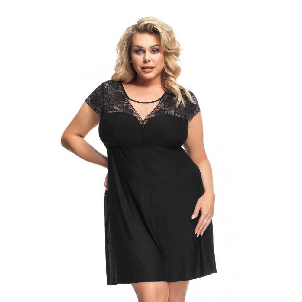 Очаровательная рубашка из нежно мерцающего атласа. Декольте украшен эластичным кружевом такого же цв..