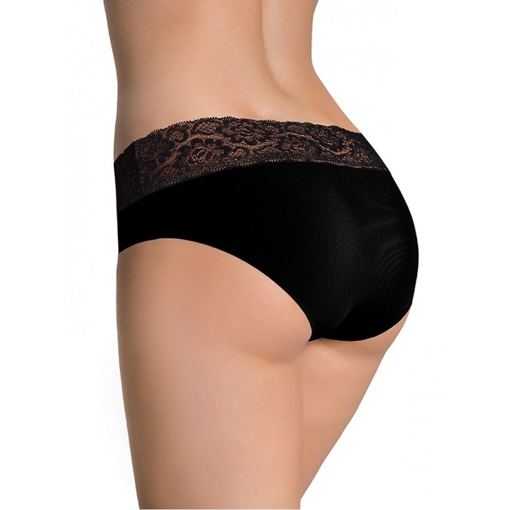 Женские трусики из черного, гибкого и очень мягкого кружева с цветочным мотивом. Бесшовные края в ви..