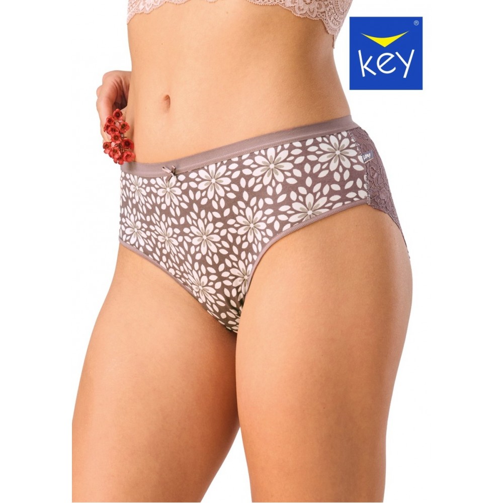 Женские трусики-слип с классической талией. Задняя часть изделия из нежного кружева с цветочным узор..