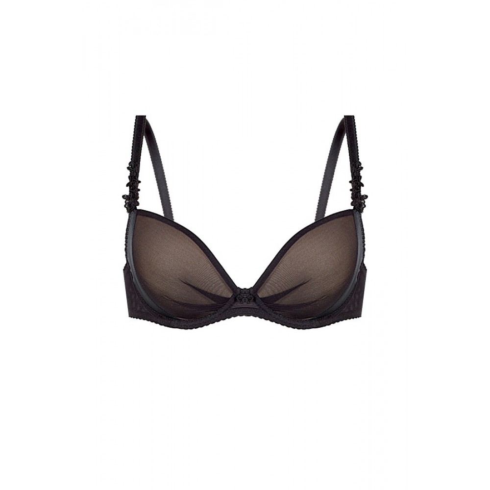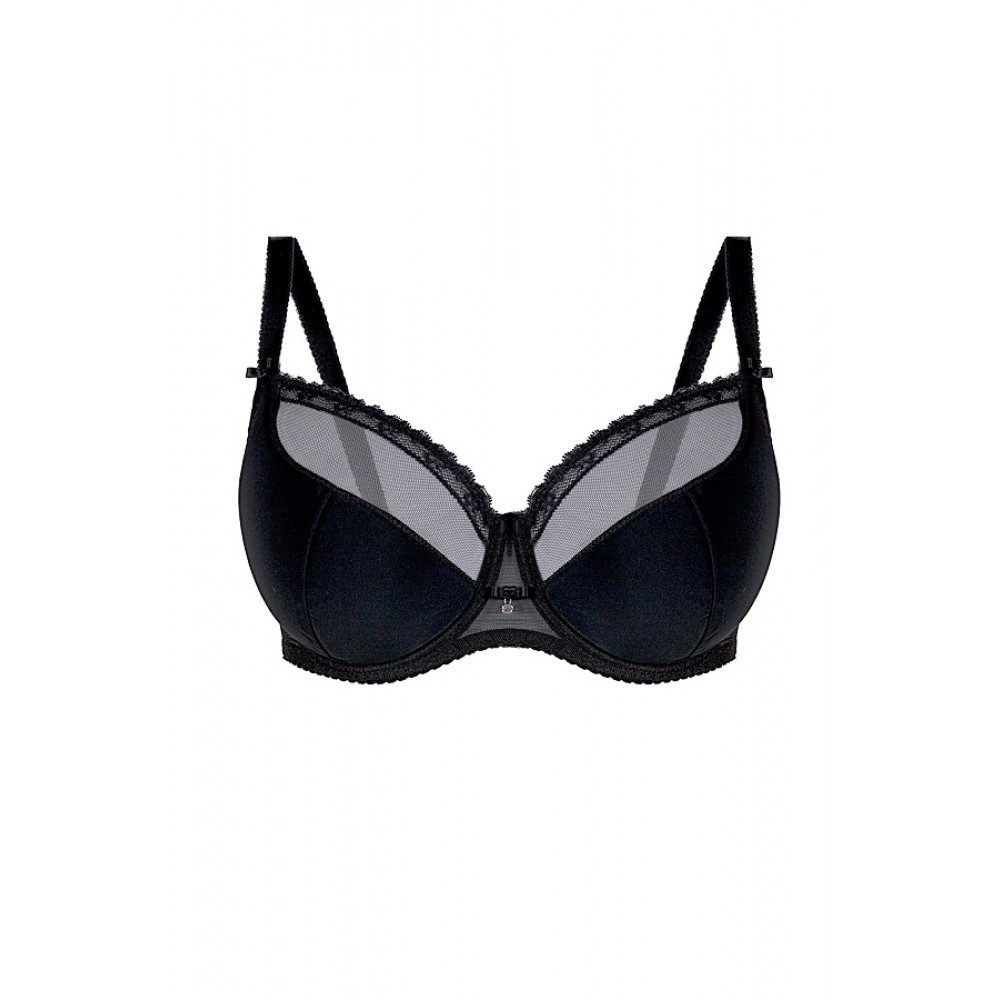 Полуплотный бюстгальтер из микрофибры. Чашечки верхнего силуэта из нежного фатина, украшенные кружев..