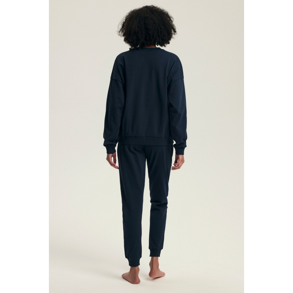 Model składa się z bluzy z długim rękawem i nadrukiem „Dream. Plan. Have Fun.”, która dodaje całości pozytywnej energii. Spodnie z elastyczną talią i praktycznymi kieszeniami zapewniają swobodę i wygodę w każdej sytuacji. Elastyczne ściągacze w nogawkach i rękawach dopełniają sportowo-lifestylowy charakter zestawu.