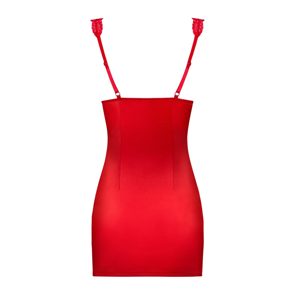 Комплект включает сорочку и стринги. Сорочка выполнена из искусственной кожи и прозрачной сетки, что..