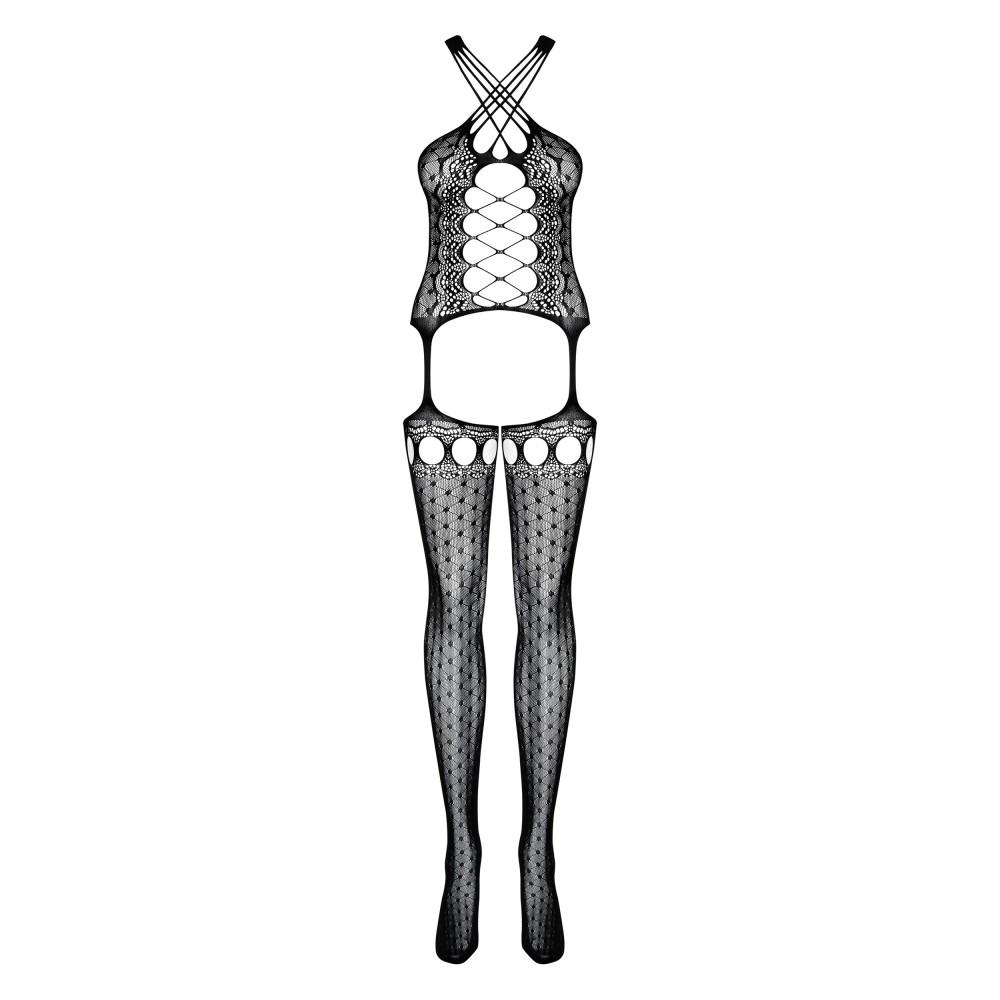 Эффектное боди, надеваемое на шею, с интригующими вырезами на груди и в промежности. Изготовлен из г..