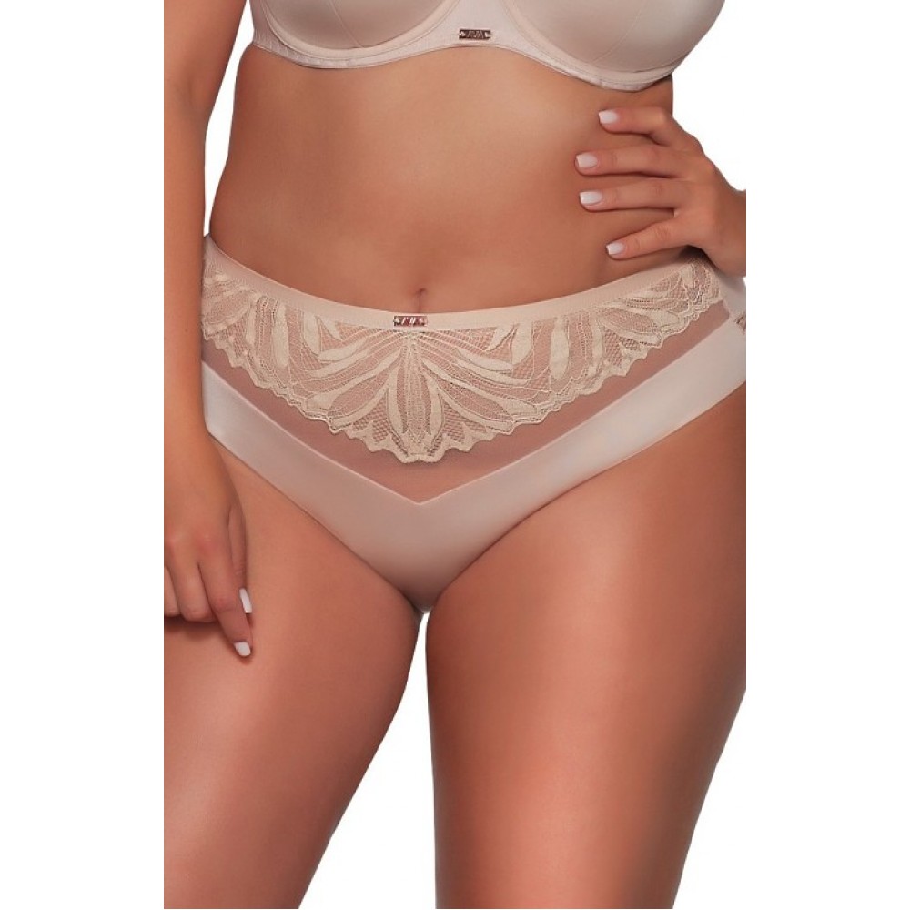 Женские трусики-слипы с кружевной вставкой спереди и бежевой сетчатой подкладкой. Задняя часть выпол..