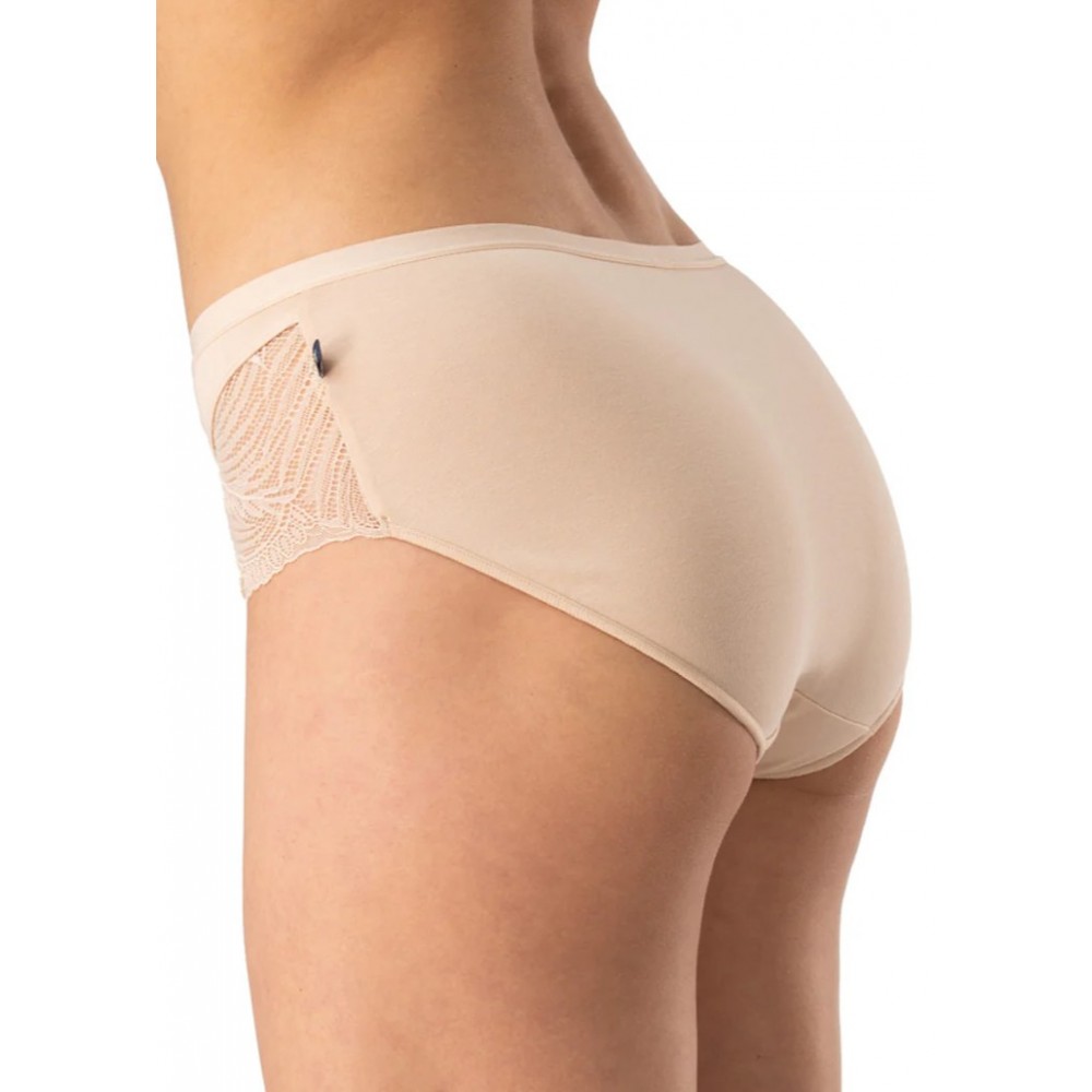 Женские трусики-слипы из высококачественного хлопка с поясом на плоской резинке. Боковые стороны закрыты, штанины отделаны ажурным кружевом спереди. Упакованы в коробку по две штуки. Состав: 95% хлопок, 5% эластан.