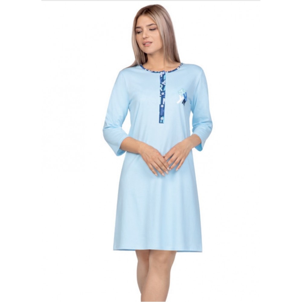Эта ночная рубашка изготовлена из высококачественного хлопка. Застегивается на пуговицы и отделана ц..