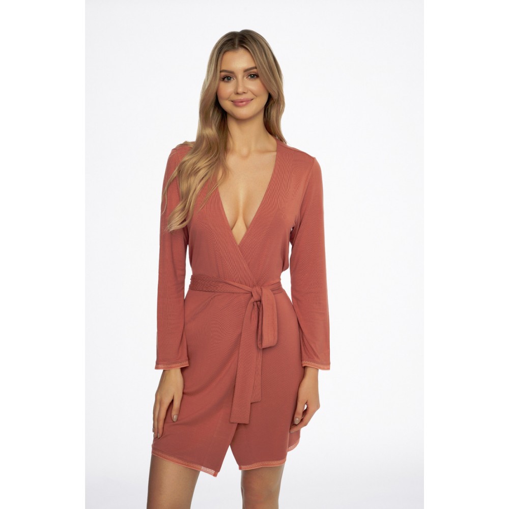 Халат Alena — идеальный выбор для всех ценителей минимализма. Его интригующий оттенок уютно обволакивает тело. Изящные, обработанные края и глубокий вырез добавляют чувственности. Этот халат с длинными рукавами завязывается на талии и украшен кружевной отделкой по подолу и манжетам. Доступен в двух цветах.
