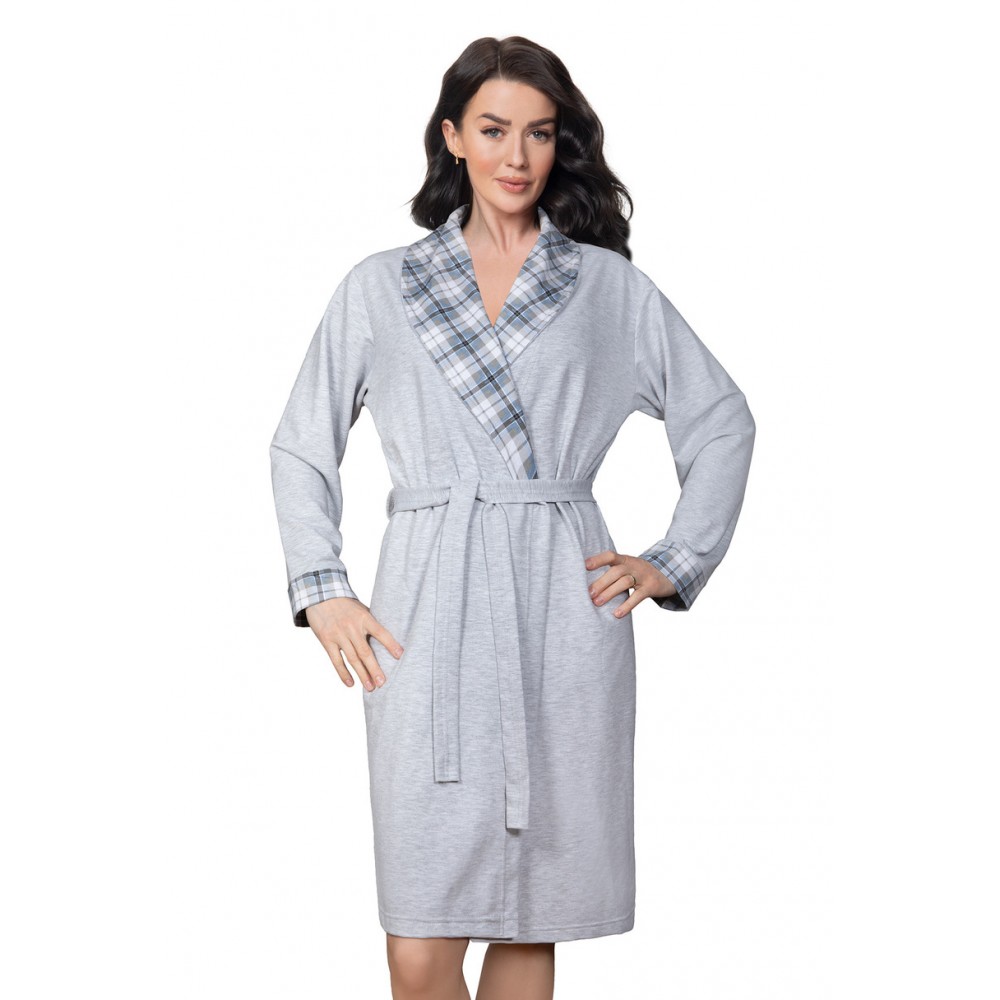 Женский халат с шалевым воротником, из хлопка, с длинными рукавами, завязывается на талии.