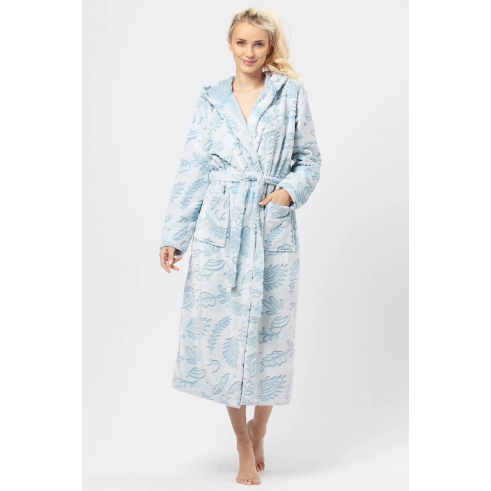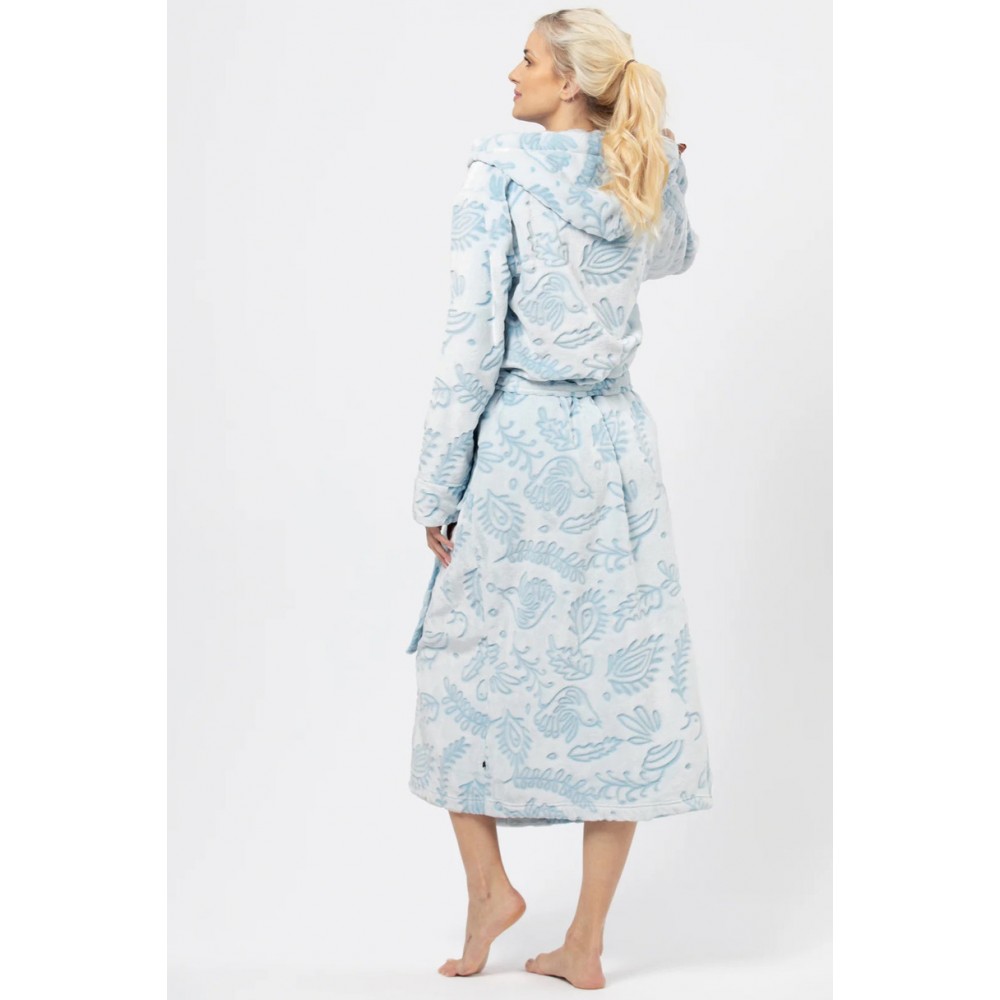 Красивый структурированный рисунок с декоративным вырезанным фольклорным мотивом подчёркивает исключительно шелковистая и мягкая на ощупь ткань Velvet Super Soft, обеспечивающая прочность и комфорт. Крой не стесняет движений, удобен и в то же время очень практичен: капюшон, глубокие передние карманы и широкий пояс. Вшитые манжеты внизу рукавов легко и быстро подворачиваются, чтобы не мешать приготовлению утреннего кофе! Приятный, нежный оттенок синего делает его универсальным и элегантным выбором для любого сезона. Этот очень женственный халат, полный очарования и элегантности, идеально подходит для моментов отдыха и радости дома!