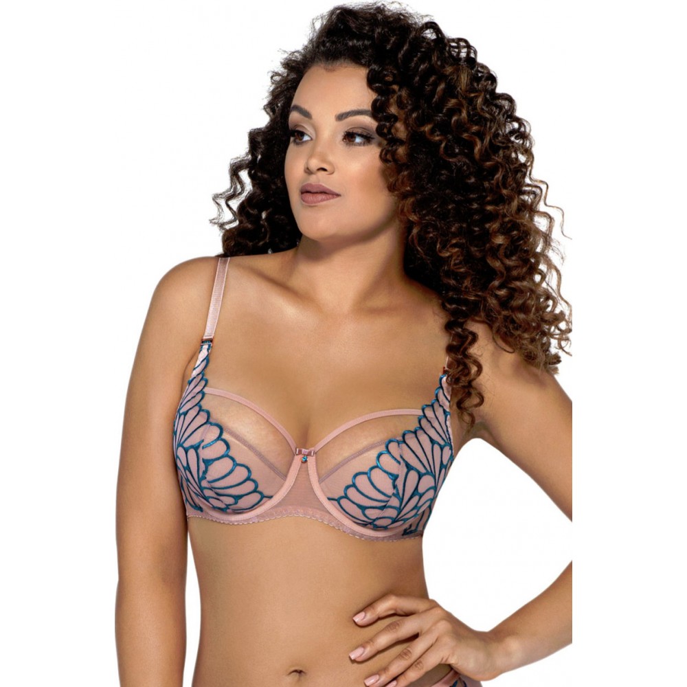 Изысканный дизайн модели AV 1927 идеально дополнит весенние и летние образы. Этот полумягкий бюстгальтер идеально формирует грудь благодаря прочным чашкам на поролоновой подкладке и мягкой хлопковой нижней части. Верхняя часть, выполненная из прочного тюля телесного цвета с бежевой окантовкой, идеально облегает изгибы груди. Вышивка в виде бирюзовых ангельских крыльев, обрамляющая прозрачные чашки, создает невероятно чувственный эффект. Этот восхитительный предмет нижнего белья дополнен пряжками, инкрустированными стразами, и кокетливым разрезом на переносице.