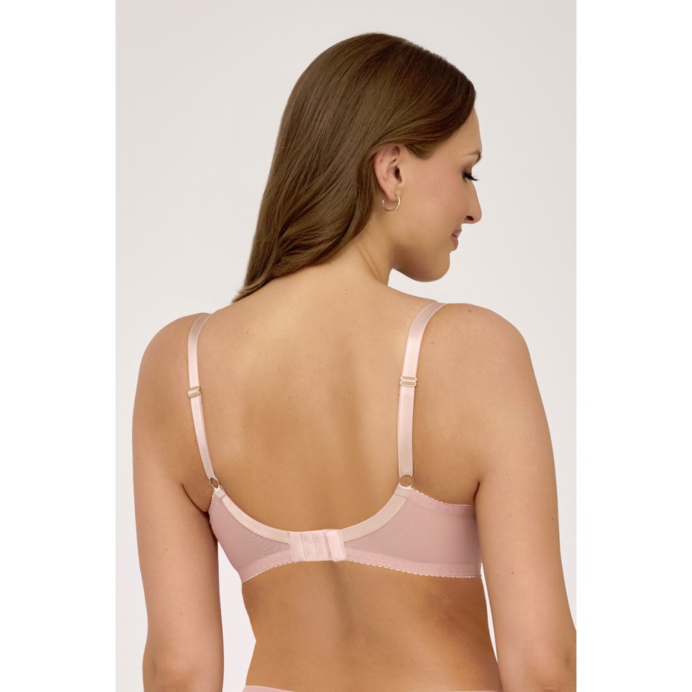 Великолепный бюстгальтер AV 2245 Rosegold Semi Soft – это современное сочетание элегантности и чувственности. Нежный оттенок розового золота дополняет изысканная вышивка в кремовых и золотых тонах, придавая бюстгальтеру неповторимый характер. Полумягкие чашки – нижняя часть с поролоновой подкладкой, а верхняя часть из вышитого тюля – обеспечивают надежную поддержку, слегка приподнимая и подчеркивая естественную форму груди.
