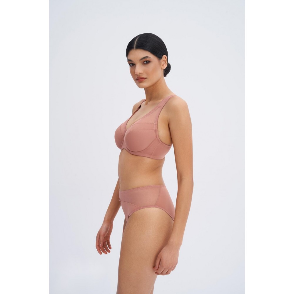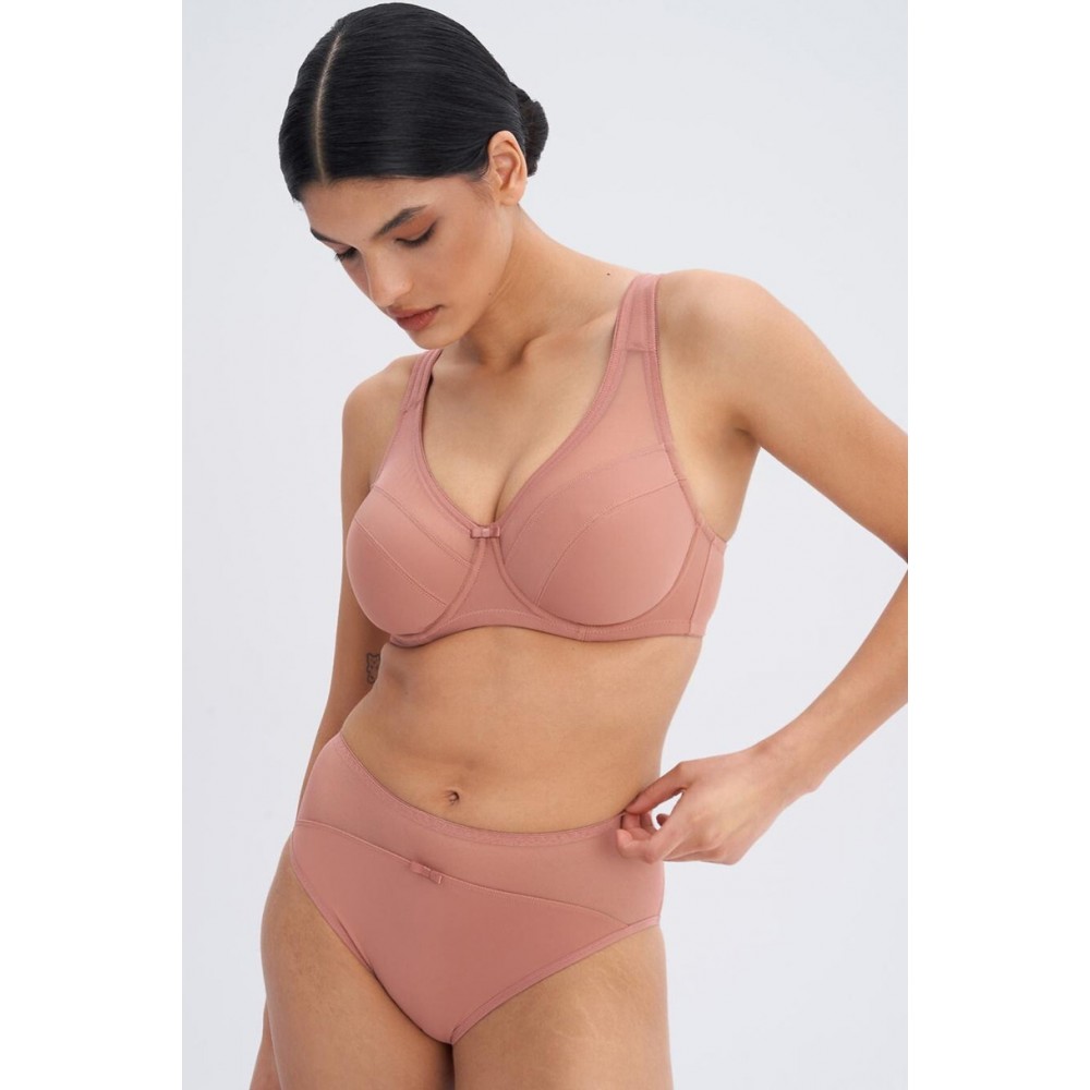 Miękki biustonosz z fiszbinami stworzony z myślą o kobietach, które cenią komfort, stabilne podtrzymanie i elegancki wygląd. Model łączy nowoczesny design z funkcjonalnością – dolna część miseczek wykonana jest z gładkiej, przyjemnej w dotyku mikrofibry, natomiast górna część z delikatnej, prześwitującej siateczki, która dodaje lekkości i subtelnej kobiecości. Wewnętrzna warstwa podszyta bawełną zapewnia komfort noszenia przez cały dzień oraz dba o skórę. Stabilne fiszbiny modelują biust i gwarantują odpowiednie podparcie, a nieodpinane ramiączka zwiększają trwałość i wygodę użytkowania. To idealny wybór na co dzień dla kobiet poszukujących połączenia wygody i estetyki.