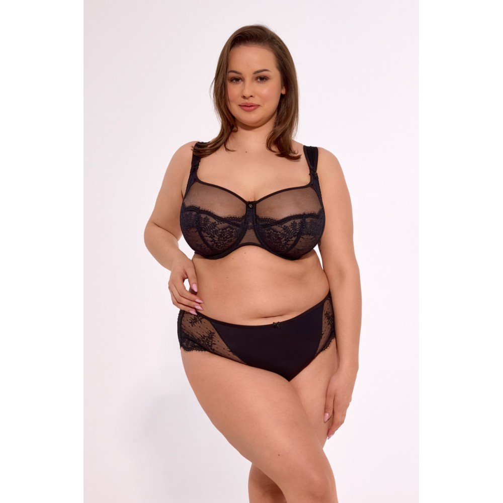 Camilla — мягкий бюстгальтер. Мягкие чашки выполнены из чёрного кружева и тюля. Модель дополнена дополнительным вертикальным вырезом и боковой вставкой, предотвращающей выпячивание бюста. Бюстгальтер Camilla прекрасно собирает и формирует грудь. Дополнительным преимуществом являются мягкие поролоновые лямки, ширина которых регулируется по размеру груди. Пояс изготовлен из эластичной ткани и имеет боковые косточки, что обеспечивает устойчивость всей конструкции.