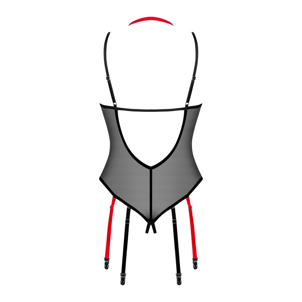 Вам нравится чувствовать себя звездой? Боди Glandez привлечет внимание и подарит массу комплиментов! Сочетание открытого кроя и прозрачного материала – гарантия незабываемых ощущений, полных страсти. Черный цвет покроет вашу кожу, чувственно обнажив обнаженность вашей спины и подчеркнув все аспекты вашей красоты. Красные детали добавят пикантности и пробудят в вас соблазнительность. Узнайте, почему их стоит иметь: