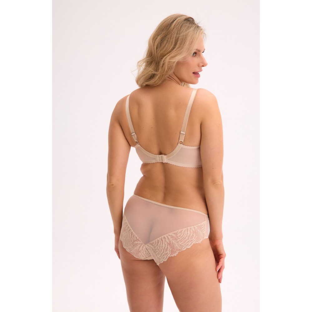 Красивый кружевной бюстгальтер с полуподушечками. Чашечки, перемычка и боковые части покрыты красивы..