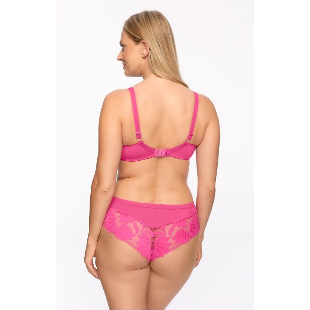 Полумягкий бюстгальтер на косточках с чашками из гламурного кружева на подкладке из розового поролон..
