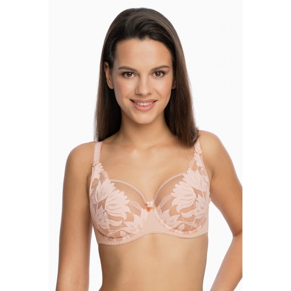 Мягкий бюстгальтер на косточках. Чашечки на тюлевой подкладке с отделкой из красивого цветочного кру..