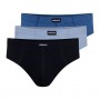 Удобные мужские трусы-слипы классического кроя из высококачественного, мягкого и приятного для кожи хлопка. Пояс дополнен не сдавливающей резинкой, скрытой в хлопковом туннеле. Упакованы в коробку по три пары разных цветов. Состав: 100% хлопок.