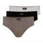 Удобные мужские трусы-слипы классического кроя из высококачественного, мягкого и приятного для кожи хлопка. Пояс дополнен не сдавливающей резинкой, скрытой в хлопковом туннеле. Упакованы в коробку по три пары разных цветов. Состав: 100% хлопок.