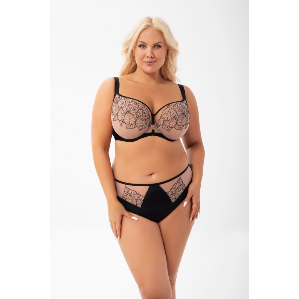 Этот мягкий бюстгальтер предназначен для женщин со средней, большой и очень большой грудью. Он обеспечивает очень сильную поддержку и центрирующий эффект. Трехсекционные чашки выполнены из вышитого материала на подкладке из прочного тюля. Для большего комфорта верхний край пояса отделан мягкой окантовкой. Верхний край чашки плавно переходит в бретели для лучшей поддержки. Баска украшена декоративным элементом оттенка розового золота. Задняя часть выполнена из непрозрачной, высококачественной, эластичной лайкры для большего комфорта. Боковые косточки предотвращают скатывание материала. В зависимости от размера, застежка на двух- или трехрядные крючки с трехпозиционной регулировкой. Несъемные, регулируемые бретели трех размеров ширины. Фурнитура оттенка розового золота (без никеля).
