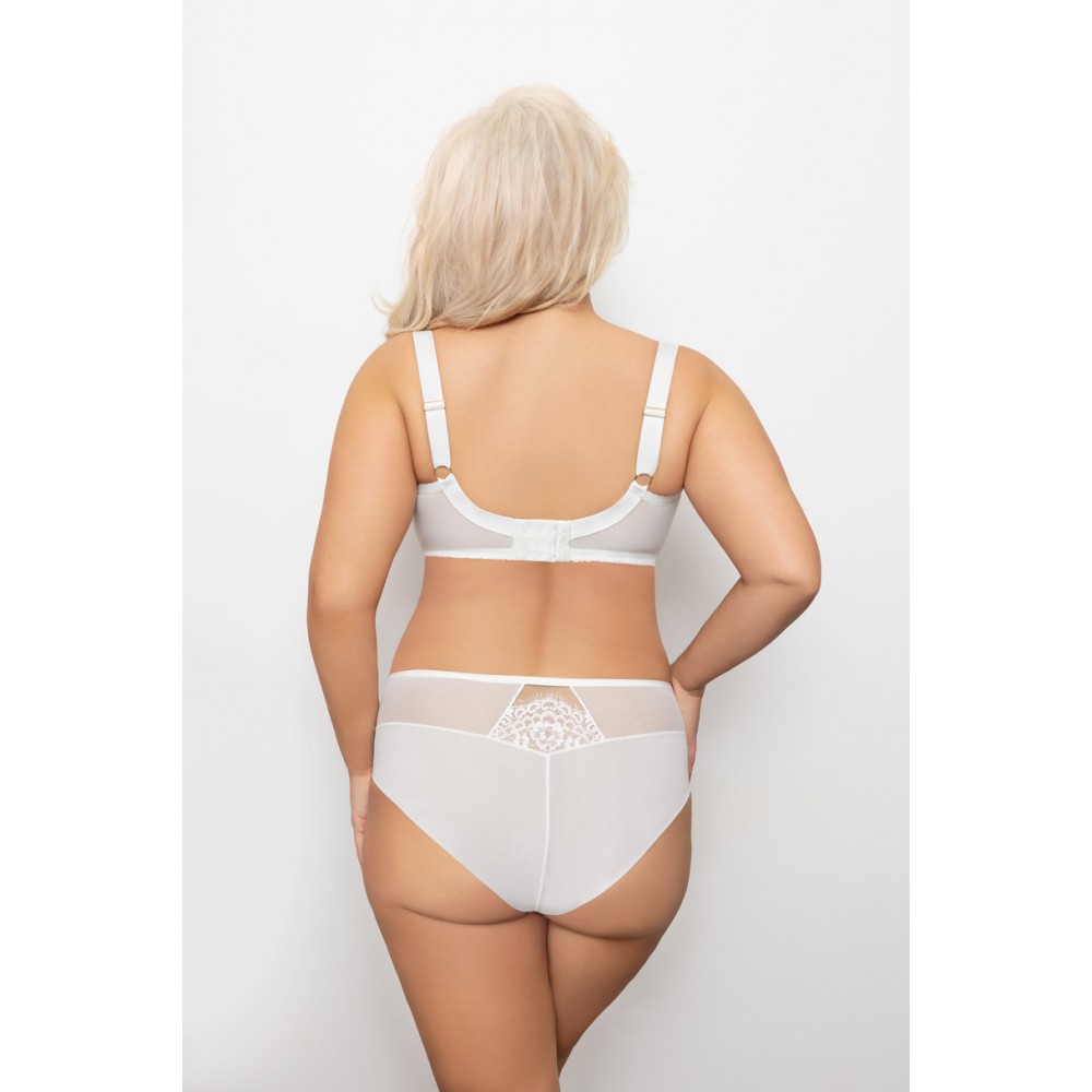 Чашечки из 3 частей, изготовленные из прочного кружева с ресничками и прочного тюля, швы отделаны декоративной блестящей нитью.