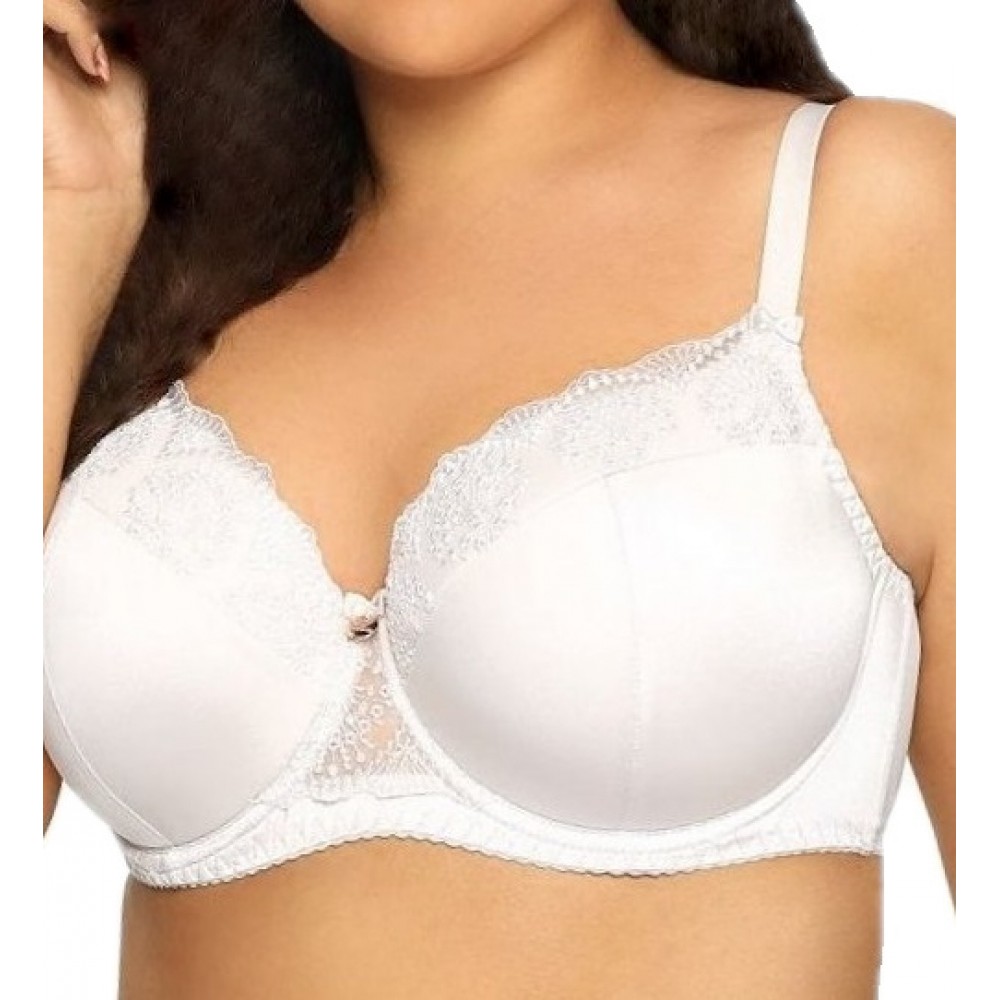 Полуплотный бюстгальтер нежного бежевого цвета. Модель из атласной микрофибры, с тюлевой сеткой по в..