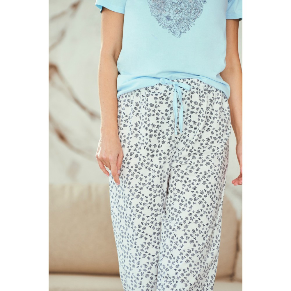 Женская пижама 3513 ALESSIA – это стильный и удобный вариант для женщин, ценящих натуральные материалы и модный, женственный дизайн. Изготовлен из 100% высококачественного хлопка, он мягкий, дышащий и приятный на ощупь, обеспечивая комфортный сон и отдых в уюте дома. Футболка с короткими рукавами и круглым вырезом идеально сидит, а декоративный принт спереди придает современный вид.
