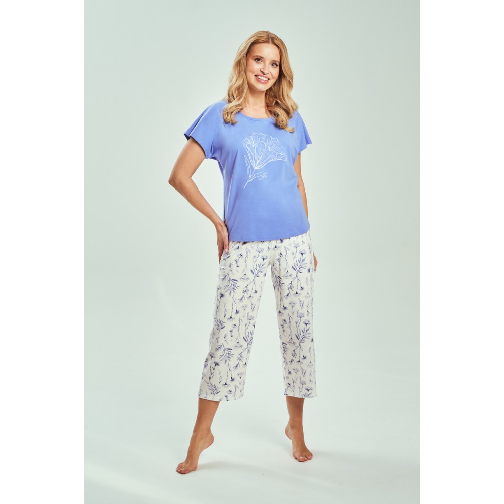 Женская пижама с рукавами 7/8 из узорчатого хлопка. Круглый вырез горловины, брюки длиной 7/8 в тон ..